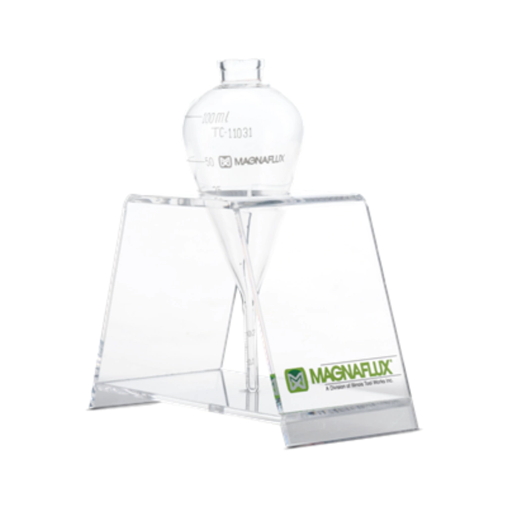 Cada tubo de decantação da Magnaflux é calibrado individualmente para monitorar com precisão a concentração de partículas magnéticas em suspensões e identificar níveis de contaminação do banho. Projetado para atender às recomendações das principais normas de ensaio por partículas magnéticas.